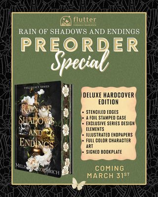 Orders containing pre-order items will be held until all items are ready to ship. If you’d like your available items shipped sooner, additional shipping costs may apply. Please email flutterbookstore@gmail.com for details.